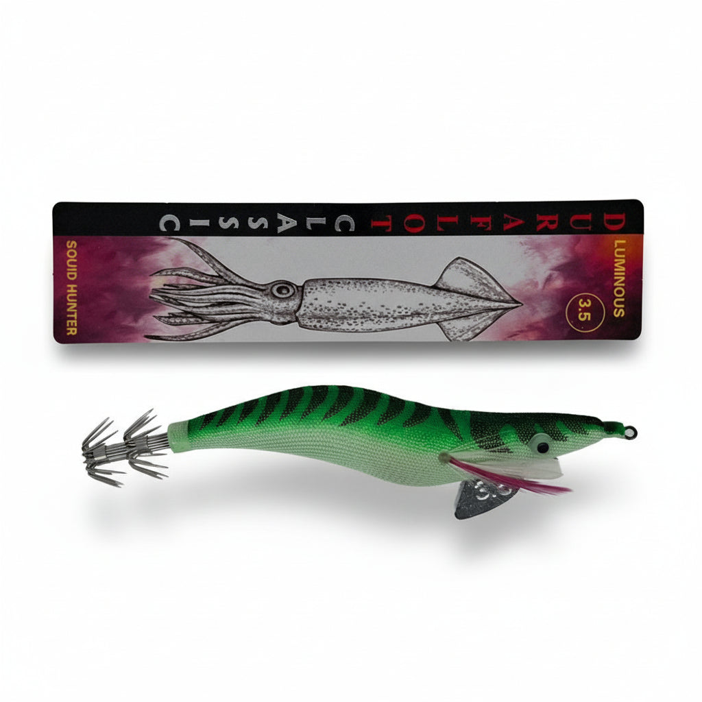 Señuelo eging de diseño clásico de 3.5 cm en color verde, ideal para la captura de cefalópodos. Su tamaño compacto y tonalidad natural lo hacen especialmente efectivo en aguas claras y fondos rocosos. Fabricado con materiales resistentes a la abrasión, mantiene su forma y flotabilidad tras múltiples lanzamientos. Perfecto tanto para pescadores principiantes como experimentados que buscan resultados consistentes en técnica de eging.